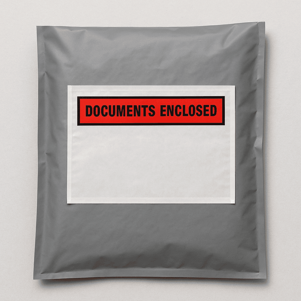 - A5 Document Wallet – with “DOCUMENTS ENCLOSED” print